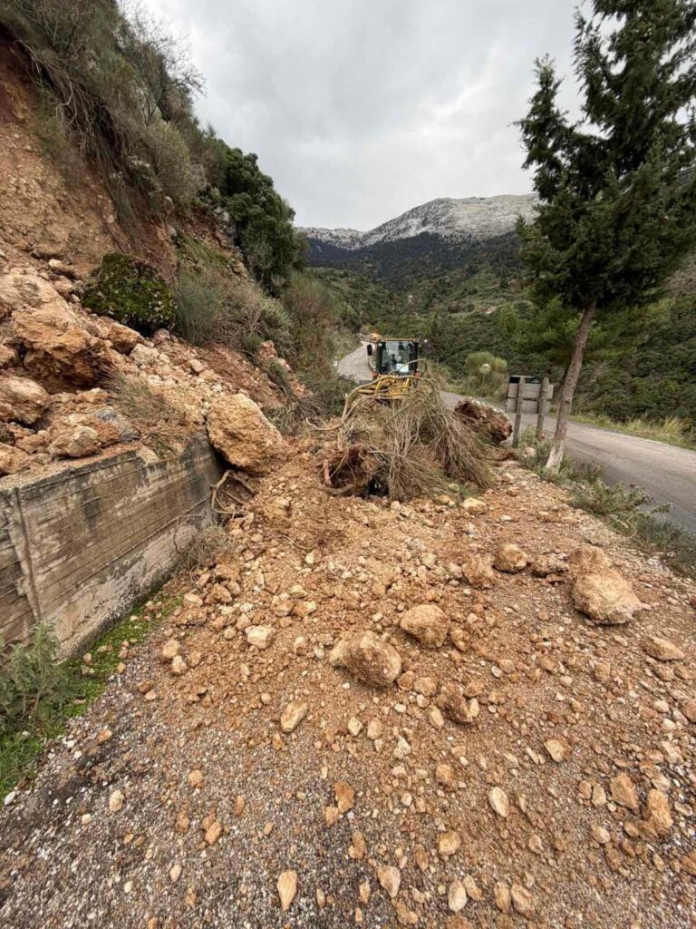 Άμεση παρέμβαση της Πολιτικής Προστασίας στην Χρυσοπηγή Ερυμάνθου μετά από πτώση βράχου (pics)