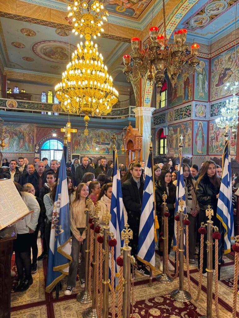 Οι μαθητές των σχολείων α’ βάθμιας και β’ βάθμιας εκπαίδευσης της Δ.Ε. Τριταίας (Ερυμάνθειας, Σκιαδά και Σταυροδρομίου) γιόρτασαν όλοι μαζί με τους εκπαιδευτικούς τους, στον Ιερό Ναό Αγίου Ιωάννη Θεολόγου Σκιαδά, όπου αμέσως μετά την θεία λειτουργία παρακολούθησαν με ενδιαφέρον τον πανηγυρικό λόγο που εκφώνησε η προϊσταμένη του Δημοτικού Σχολείου Σκιαδά, Νικολίτσα Μπερδένη.