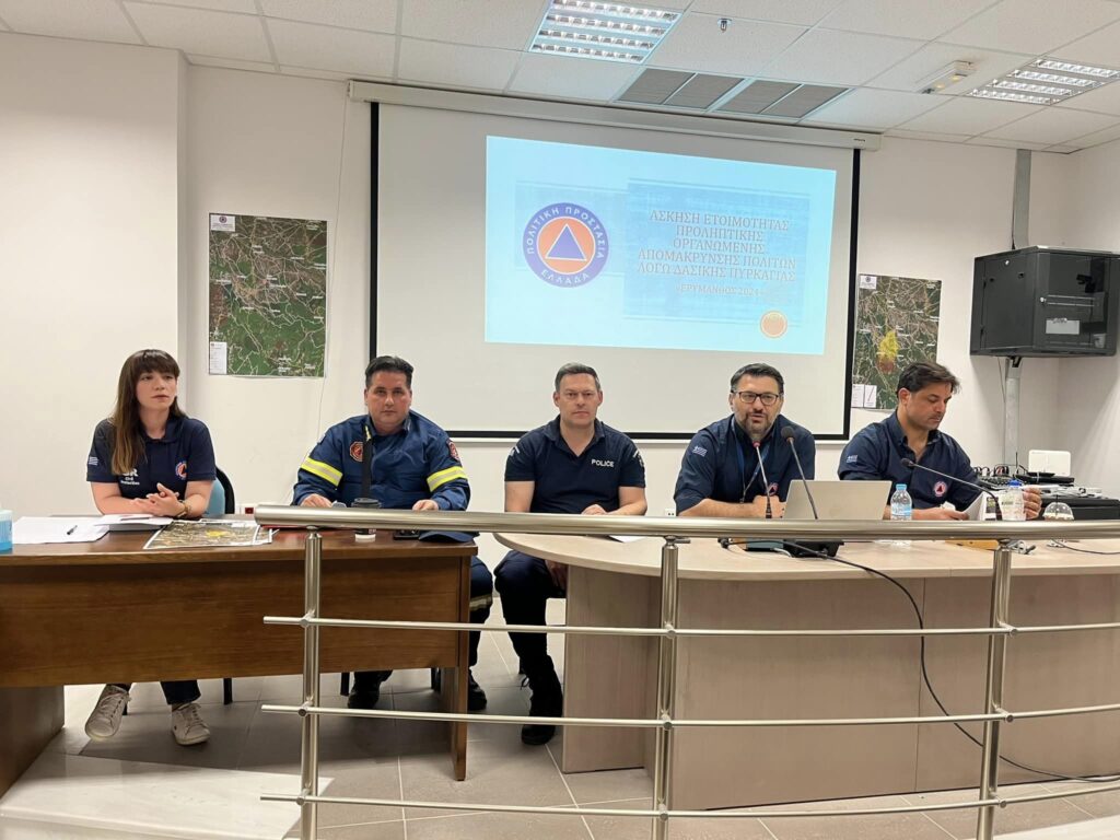 Tους ρόλους, τις αρμοδιότητες, τις διαθέσιμες δυνάμεις σε πόρους, μέσα και ανθρώπινο δυναμικό, είχαν την ευκαιρία να εξετάσουν, οι εμπλεκόμενοι φορείς, σε άσκηση επί χάρτου που πραγματοποιήθηκε σήμερα το πρωί στη Χαλανδρίτσα από τη Γ.Γ. Πολιτικής Προστασίας σε συνεργασία με τον Δήμο Ερυμάνθου.