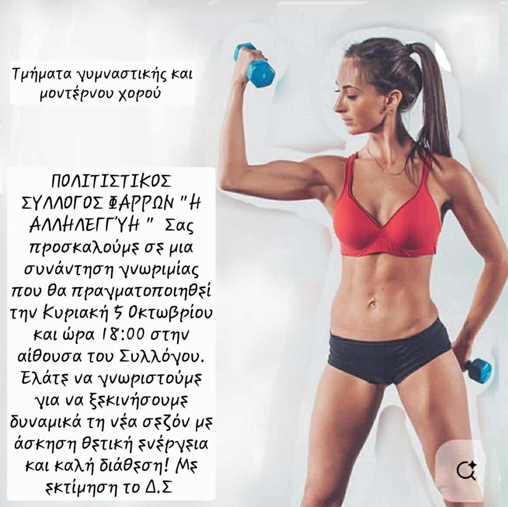 Ο Πολιτιστικός Σύλλογος Φαρρών «Η Αλληλεγγύη» δίνει το σήμα για μια νέα, δυναμική σεζόν, εγκαινιάζοντας τα τμήματα γυμναστικής και μοντέρνου χορού.