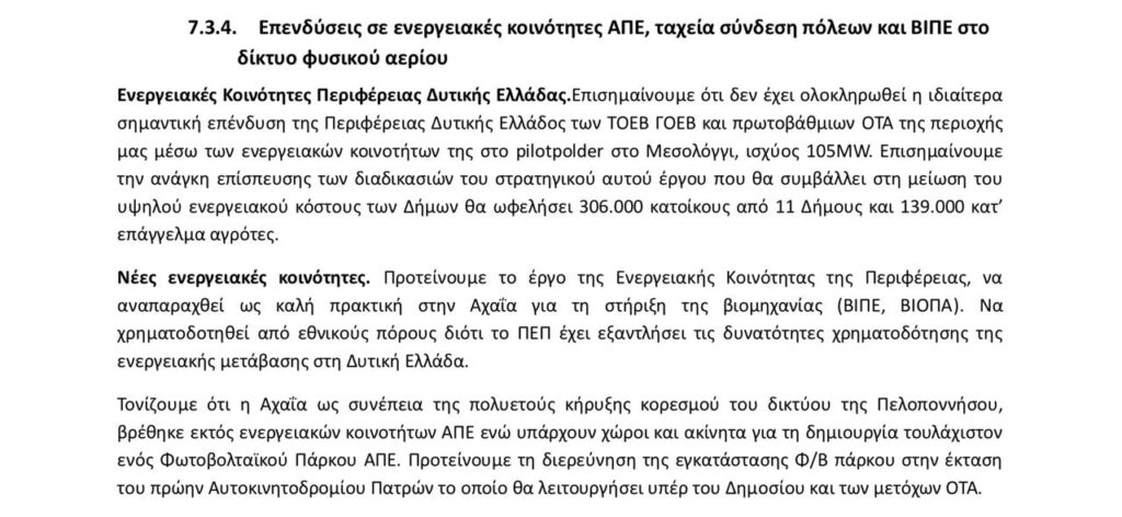Κι όµως, ενώ το ενδιαφέρον ενός ισχυρού επενδυτή του επιχειρηµατία Μάριου Ηλιόπουλου, έχει έρθει στο φως, το Επιµελητήριο Αχαΐας εµφανίζεται να ρίχνει τίτλους τέλους. Στην πρότασή του προς την Κυβέρνηση για το Τοπικό Σχέδιο Ανάπτυξης, αναφέρεται ρητά στη δηµιουργία φωτοβολταϊκού πάρκου στη θέση του Αυτοκινητοδροµίου, χαρακτηρίζοντας µάλιστα την έκταση ως «πρώην αυτοκινητοδρόµιο».